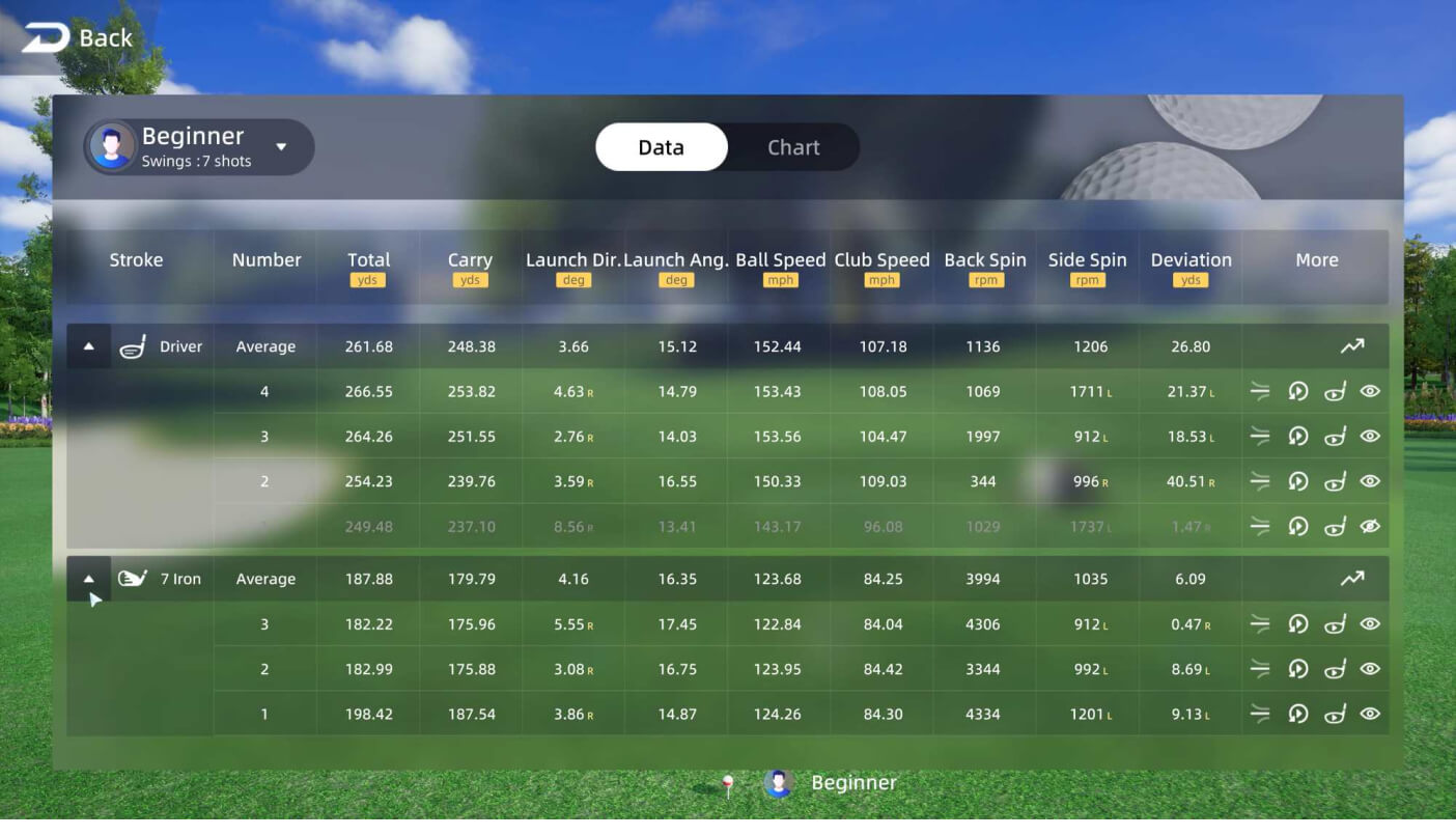 Leveraging high-speed camera technology, GOLFJOY provides 29 data points, including ball, club and player metrics. Dual video replay, featuring clubhead and player swing, makes for further game improvement. All data is instantly uploaded to the cloud, making GOLFJOY one of the most advanced golf sim software options for serious players.